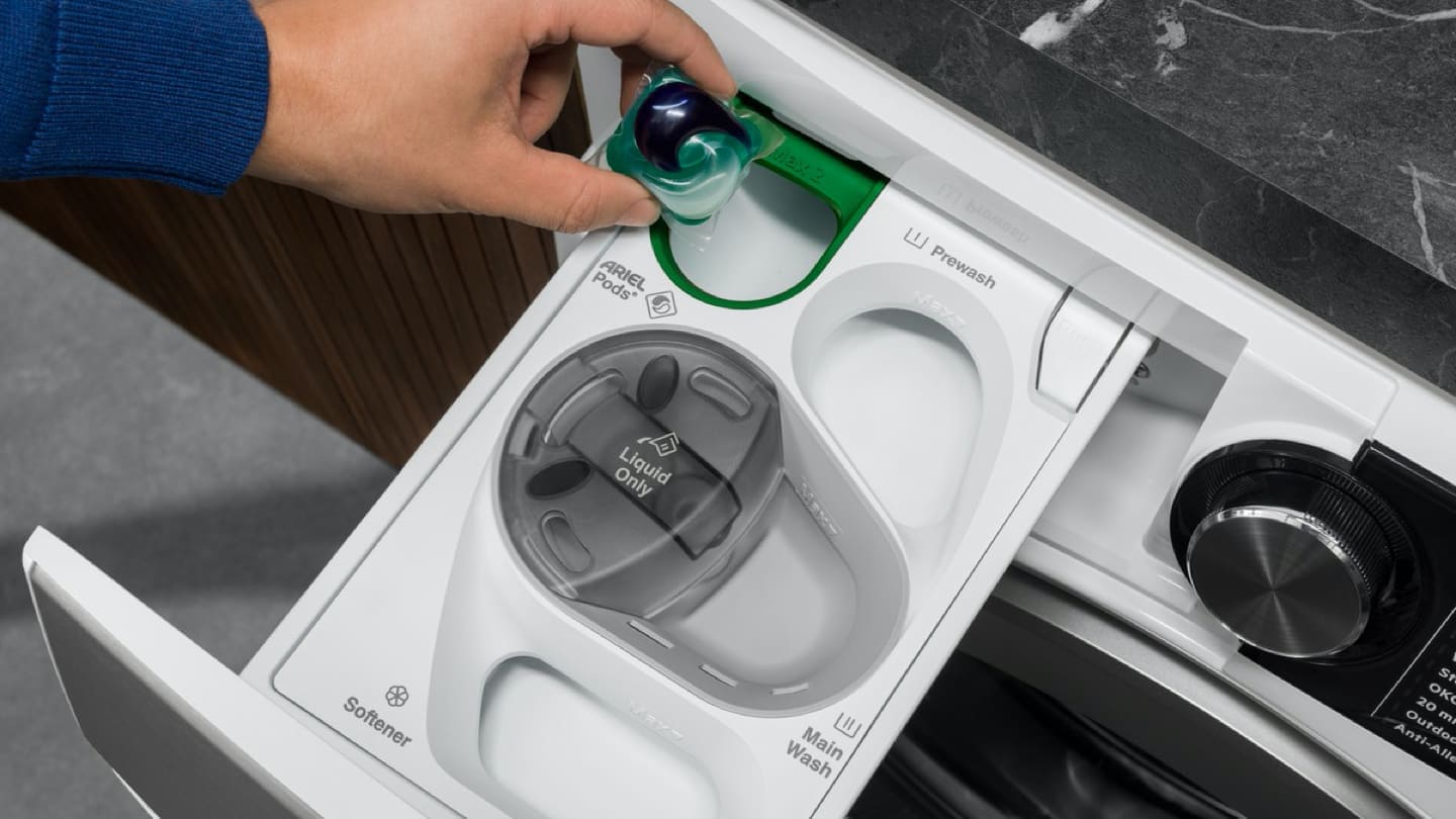 UNIVERSEL. UN SEUL TIROIR POUR TOUT TYPE DE PRODUIT DE LESSIVE, MÊME LES PODS®.