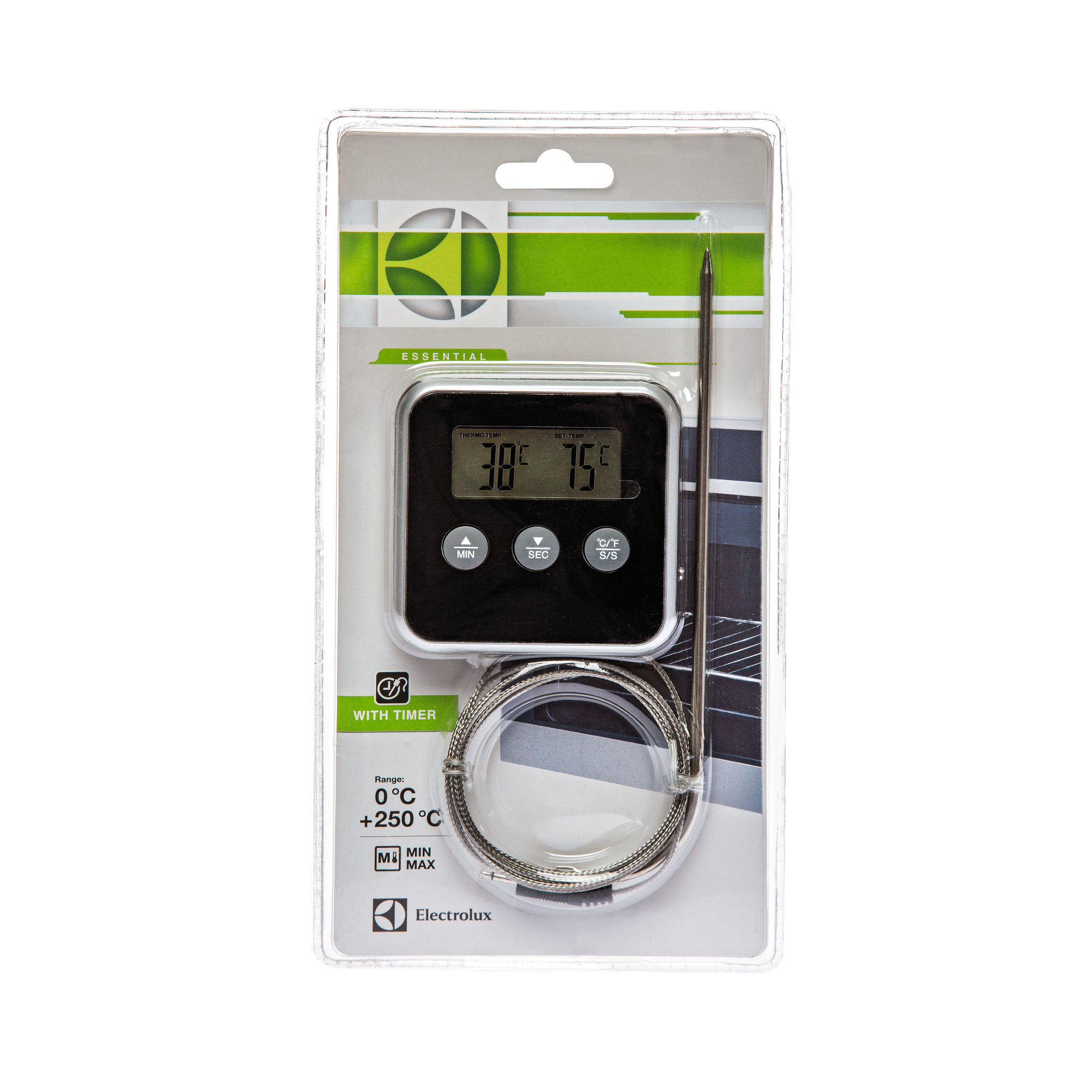 Profitez d'un steak juteux ou d'un morceau de thon cuit à la perfection sur simple pression d'un bouton. Ce thermomètre de cuisson digital avec sonde à viande, minuteur et alarme sonore vous permet de contrôler votre cuisson au degré près. Le boîtier en silicone et la sonde en acier inoxydable se nettoient sans effort, et le minuteur a une fonction compte à rebours allant jusqu'à 99 minutes. La température maximale est de 250 °C.