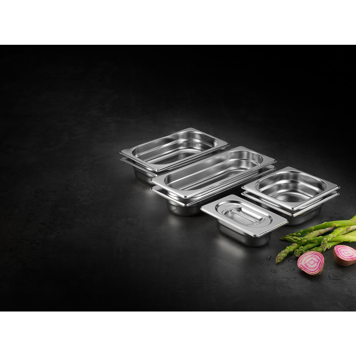 Donnez une nouvelle dimension à vos cuissons à la vapeur en maximisant les saveurs et les textures de vos ingrédients. Cet ensemble en acier inoxydable haut de gamme comprenant 8 pièces est proposé dans un large choix de tailles pour s'adapter à tous les types d'ingrédients, du poisson à la viande, en passant par le riz et les légumes. Les petites perforations permettent à la vapeur de circuler autour des aliments tout en ne laissant pas passer l'excès d'eau, pour des plats succulents et juteux. Optimisé pour être utilisé dans les fours à vapeur, peut passer au lave-vaisselle. 8 pièces, en acier inoxydable.