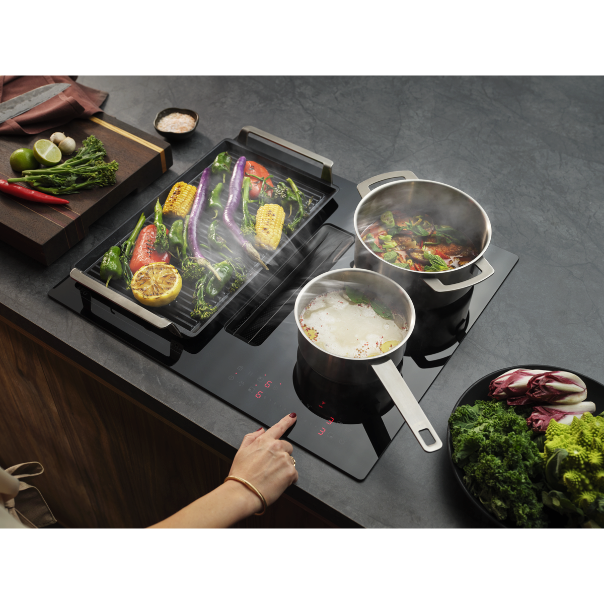 La fonction Bridge vous permet de relier deux zones de cuisson distinctes pour créer une grande zone de cuisson. La chaleur est ainsi répartie uniformément sur toute la surface, ce qui est idéal pour les grandes casseroles ou les planchas.