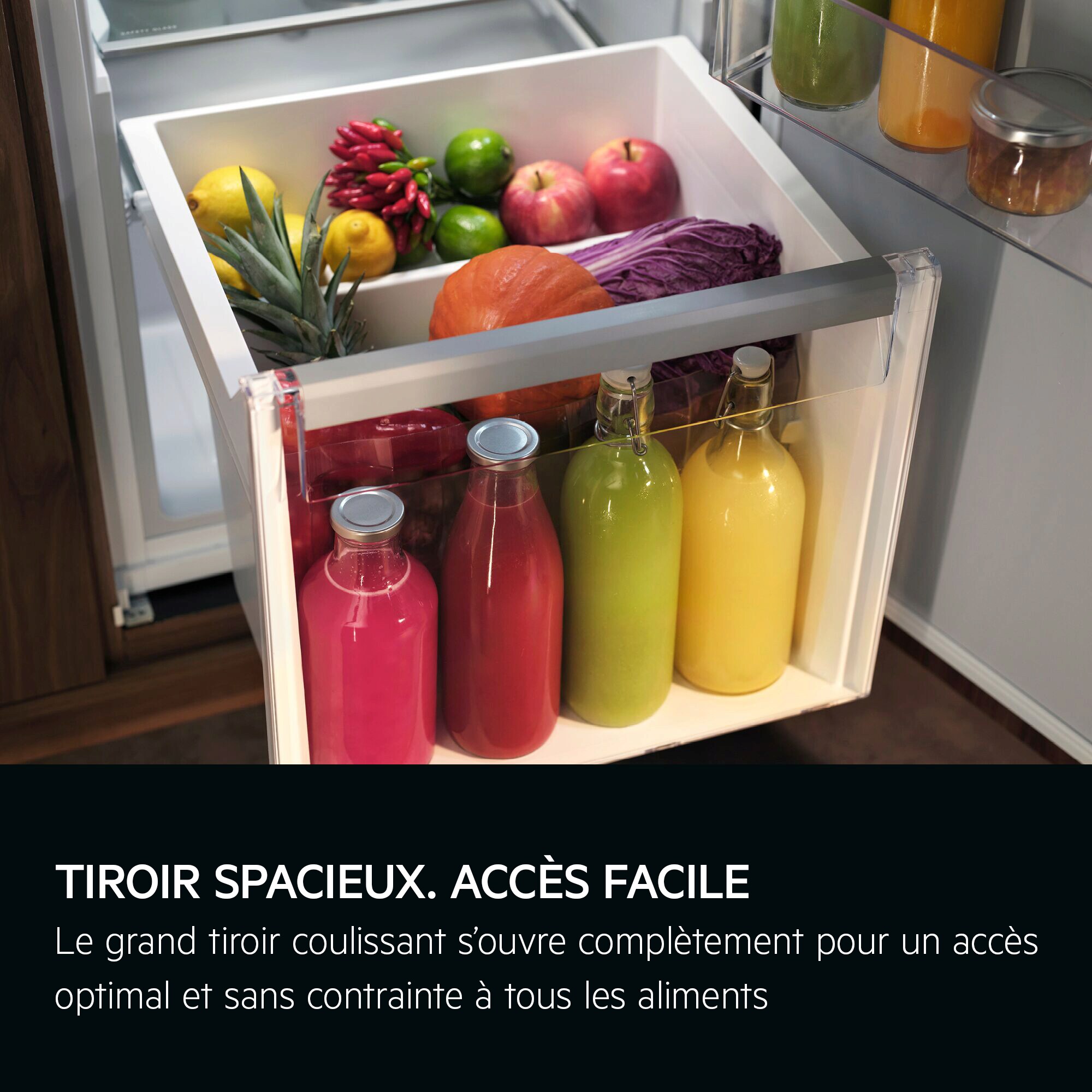 Grand tiroir coulissant : suffisamment spacieux pour un accès aisé