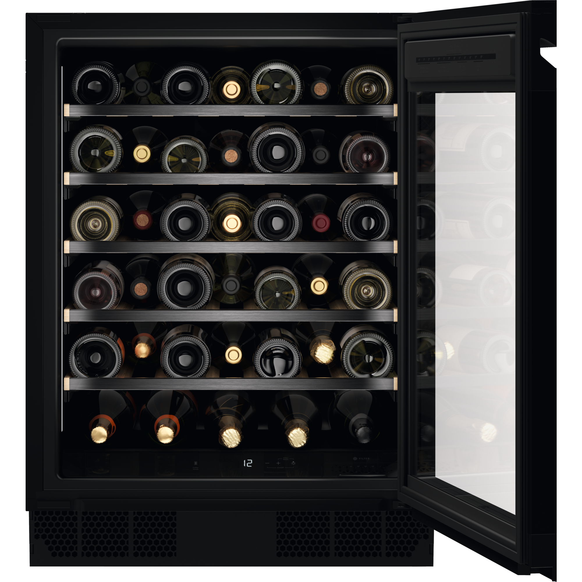 La cave à vin de vieillissement Perfect Shelving met en valeur votre collection de vins grâce à des étagères extensibles en bois de qualité supérieure. Conçues avec un espacement optimal, elles accueillent la majorité des bouteilles de 75 cl, y compris votre champagne préféré, sans rayer leurs étiquettes.