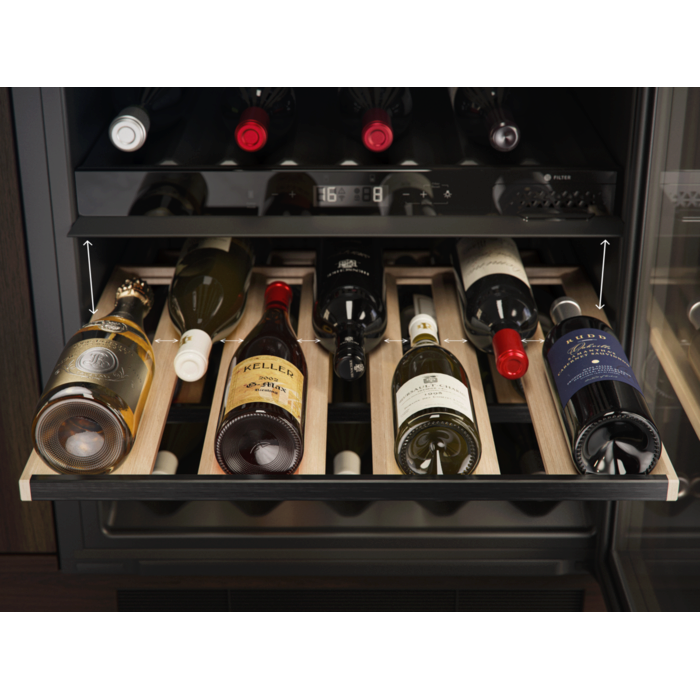 Vous avez construit une collection de vins exemplaire. Alors, accentuez-la avec la cave de vieillissement Perfect Shelving. Mettez votre collection en valeur grâce à des étagères conçues avec un espacement idéal pour accueillir la majorité des bouteilles de 75 cl, y compris le champagne, sans rayer les étiquettes.