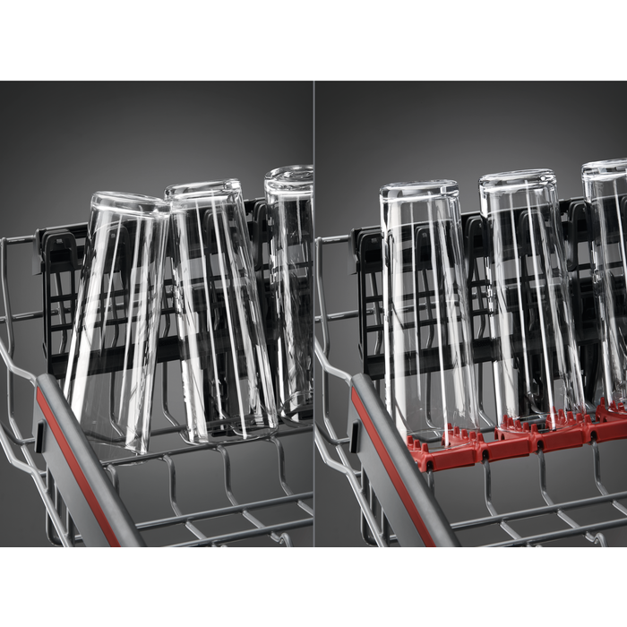 Le lave-vaisselle 7000 GlassCare prend particulièrement soin de vos verres pendant la totalité du cycle de nettoyage. Le GlassHolder unique, positionné dans le panier inférieur constitue un endroit sûr, même pour vos plus grands verres à pied.