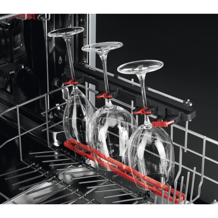 Le lave-vaisselle 7000 GlassCare prend particulièrement soin de vos verres pendant la totalité du cycle de nettoyage. Le GlassHolder unique, positionné dans le panier inférieur constitue un endroit sûr, même pour vos plus grands verres à pied.